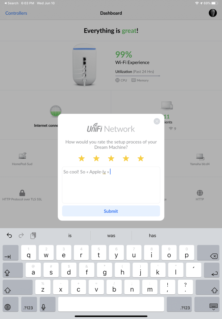 The fun part is managing the Dream Machine from the iPad or from the web. Some people would say the best products are the ones who don’t require management at all. Well, maybe in theory, but in practice, networking is a complex subject in IT.