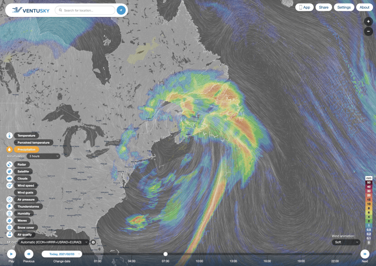 I usually start to track major weather systems up to a week before they cross my region. The included screenshots in this post show the latest snowstorm we’ve got here in Montreal which left 17 cm of snow behind it. Not a major storm but still.