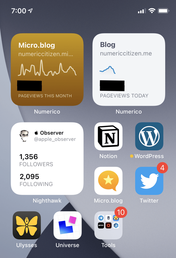 - Local news app. Many of the local news apps that I use are still lacking widget support and that’s a shame.