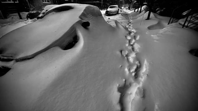 The previous picture comes from a walk after a snowstorm. This image cries to be converted to black and white. Why? This image lacks colours anyway. By making a black and white picture, working with contrast, luminosity, shadows and many other parameters, it can turn into something entirely different, unique, singular.