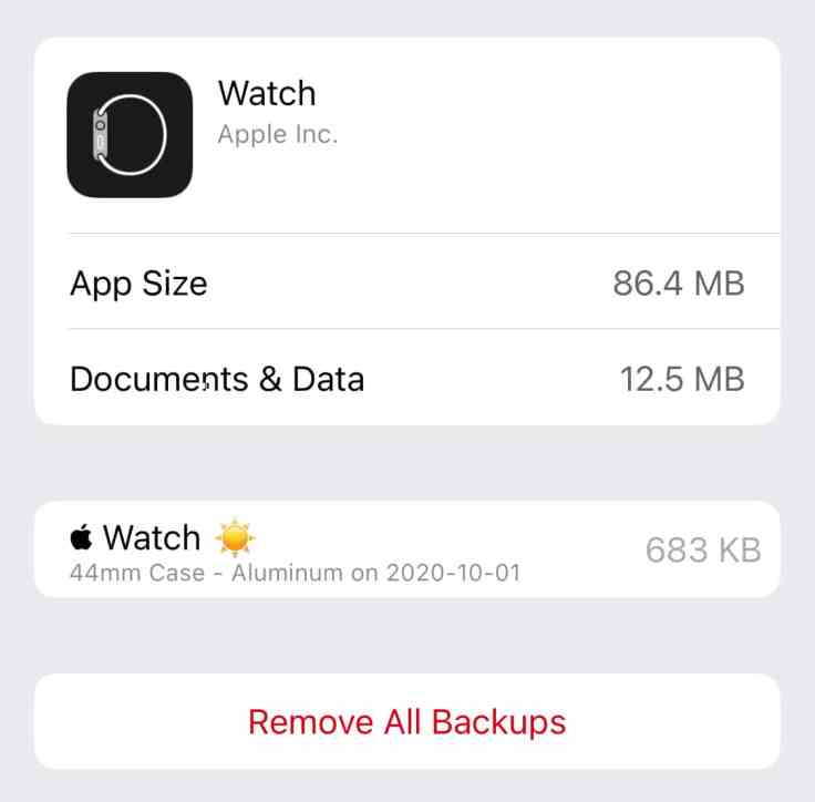 This morning I started the process of unpairing one of my Apple Watches. The process took less than two minutes to complete. To confirm if the watch was backed up, I went to Settings, General, iPhone Storage, then scrolled down to find the Apple Watch app storage consumption. In the documents section, there was one backup dating back to September 2020 (see above screenshot). Unfortunately, today’s unpairing process didn’t create the expected backup. WTF??