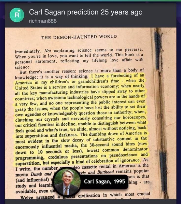 Important Words from Carl Sagan, 25 Years ago