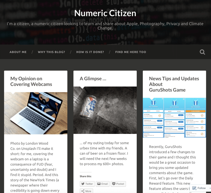 Finally found THE WordPress theme that I really like for my blog. And it is free. Enjoy the “Before & After” view in the following pictures. The blog should look fine on all devices, from desktops to smartphones. Much cleaner welcome page. Easier to read. I hope you like it.