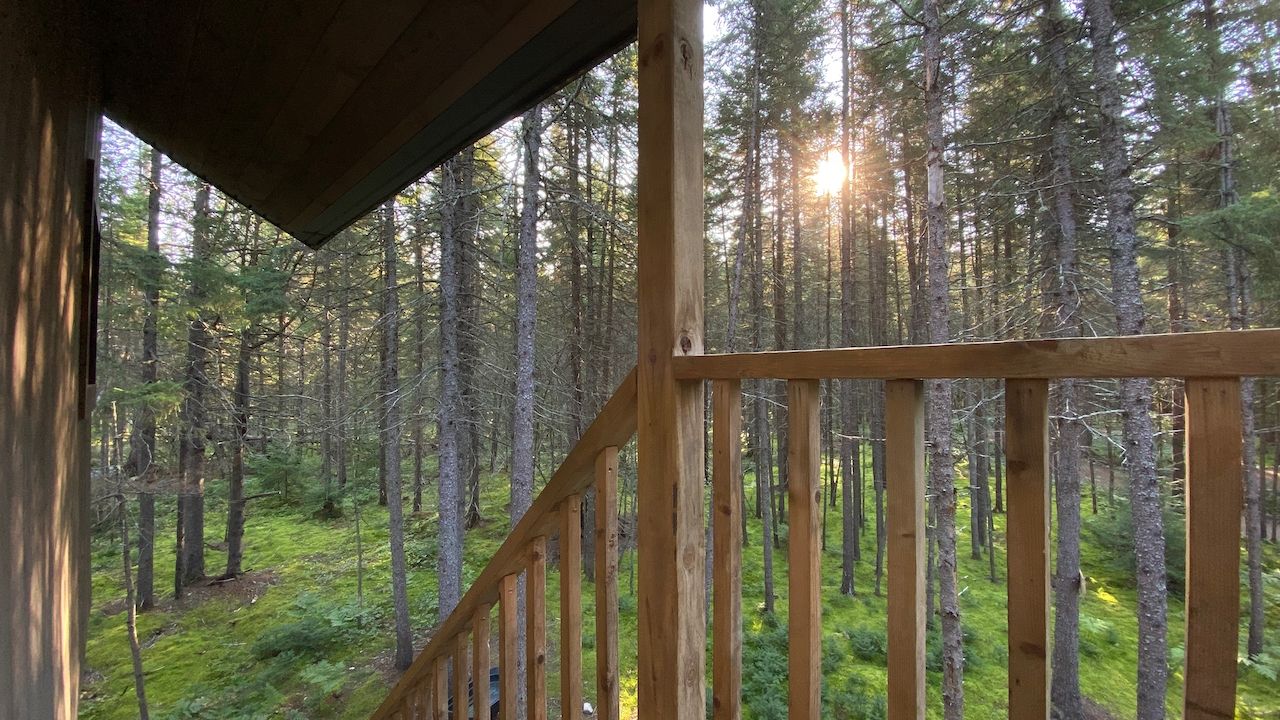 It was a wonderful early September day where summer is beginning to show signs of decline while signs of fall are pointing to the horizon. The weather was mild during the day but chilly during the night. The smell of the forest was so good, making me feel connected to it, being part of it and demanding a contemplative look. Capturing the scene is always part of any of my contemplative moments. This picture was taken from the balcony of my rented cabin where we stayed for the labour weekend, in the middle of the morning. The forest ground was filled with this green carpet; it was surreal, like a movie set in place for the occasion. What a wonderful place.