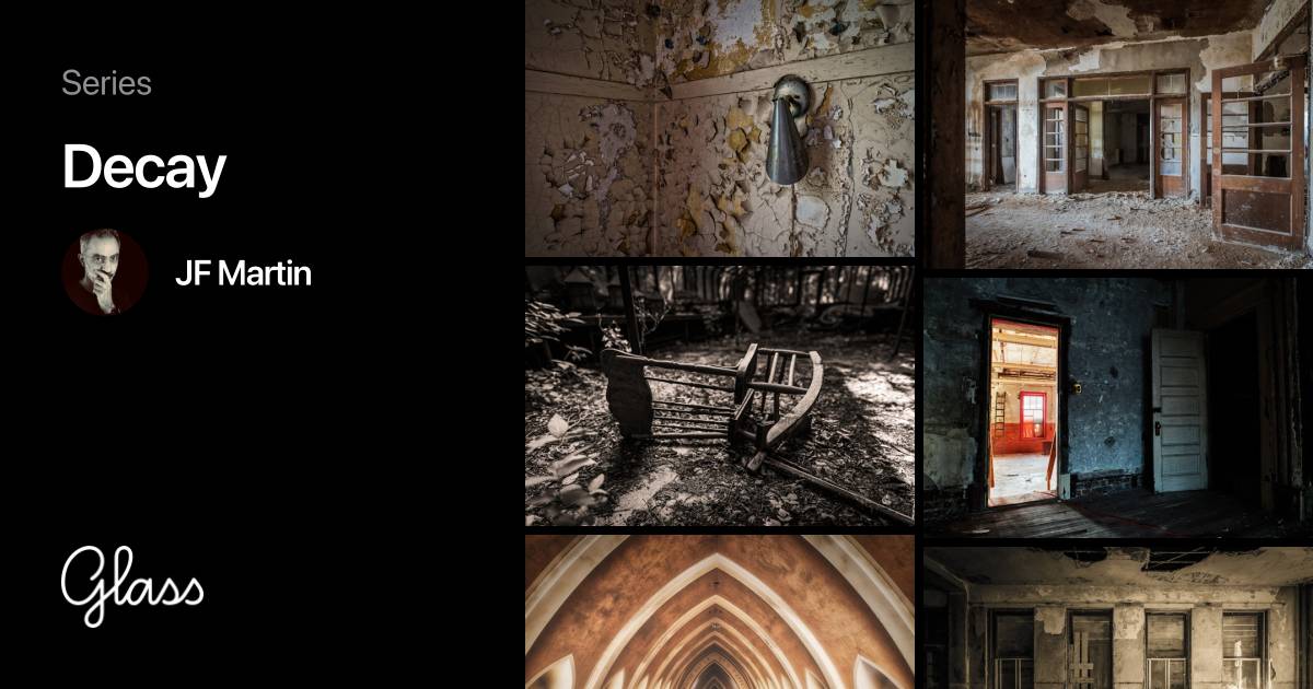 1️⃣ I finally had a chance to experience the Glass Series feature, officially available since November 12th. Since then, I managed to create a few photo series (see Darkness, Minimalism, Shadows). Creating a new series is simple and can be done in two ways: uploading many new images or selecting already published ones. The first method will flood the followers’ timeline. I wish photos would be published with some delays until all images in the series are made public. The second method is straightforward; it is not shared with followers once the series is published. As shown below, social network previews are well-designed (a link leading to a specific series posted on Bluesky). With Glass Series, Glass gave a new name to Flickr or another similar service, an album. When browsing the photo timeline, pictures that are part of a series are identified with photo thumbnails overlaid on the photo. Hovering the mouse over produces a nice animation, expanding the thumbnail to show the number of images in the series. The side effect of this design decision is to improve the discoverability of past published images. The Series adds value to Glass and proves that Glass is maturing. I'll use them to organize my photos better. 2️⃣ Thanks to the new Series feature, I discovered this photographer on Glass; Here is the Impressionism series from Nico Photo. 3️⃣ Finally, I shared many of my best urban exploration photos on Glass to go with the new category of the month: decay.