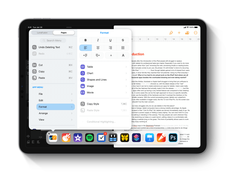 Well, if we look at macOS, a menubar is a quick way to access an application feature. By sitting there, unobstructedly, a menubar helps a user to discover the application’s features. Discoverability is one of the major problems with iPadOS since day one of the iPad. The iPad Main menu concept is an excellent answer to this problem.
