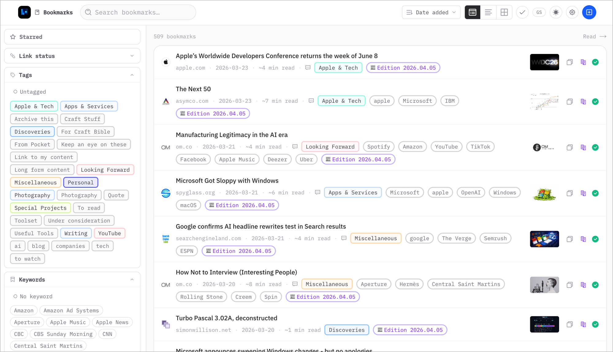 I use them every day, sometimes many times a day. My RSS reader is open constantly; it's how I stay connected to the ideas and conversations that feed my writing. My bookmark manager is the quiet backbone of my Ephemeral Scrapbook newsletter, helping me track what's worth sharing with readers each week. Two custom-built tools, perfectly shaped to my workflows in a way that no off-the-shelf product ever quite managed. That's exactly why I built them myself.