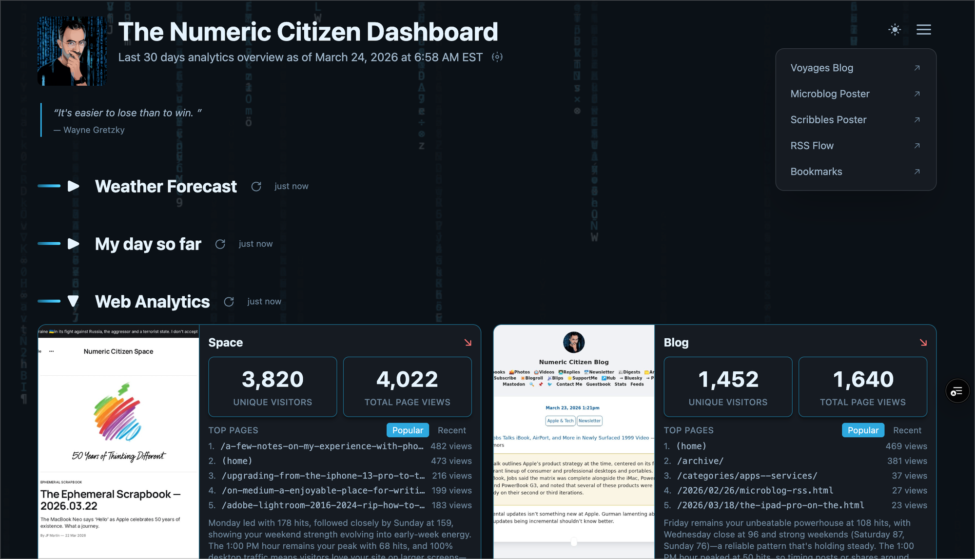 In the past year, I shipped six production web apps that support my creative workflows as a writer, photographer, and content creator. A fully featured bookmark manager. An RSS reader with AI summarization and virtual scrolling. A photo-sharing space for my travel photography. That last one deserves a moment. For years, sharing photos meant feeding them into Instagram or Facebook, surrendering them to Meta's ecosystem in exchange for an audience. I was never comfortable with that trade. Now I have a space that is entirely mine, on my own domain, under my own control. No algorithm deciding who sees what. No platform that can change its rules tomorrow. Just my photographs, presented the way I want them. That, more than any technical achievement, is what digital independence actually feels like.